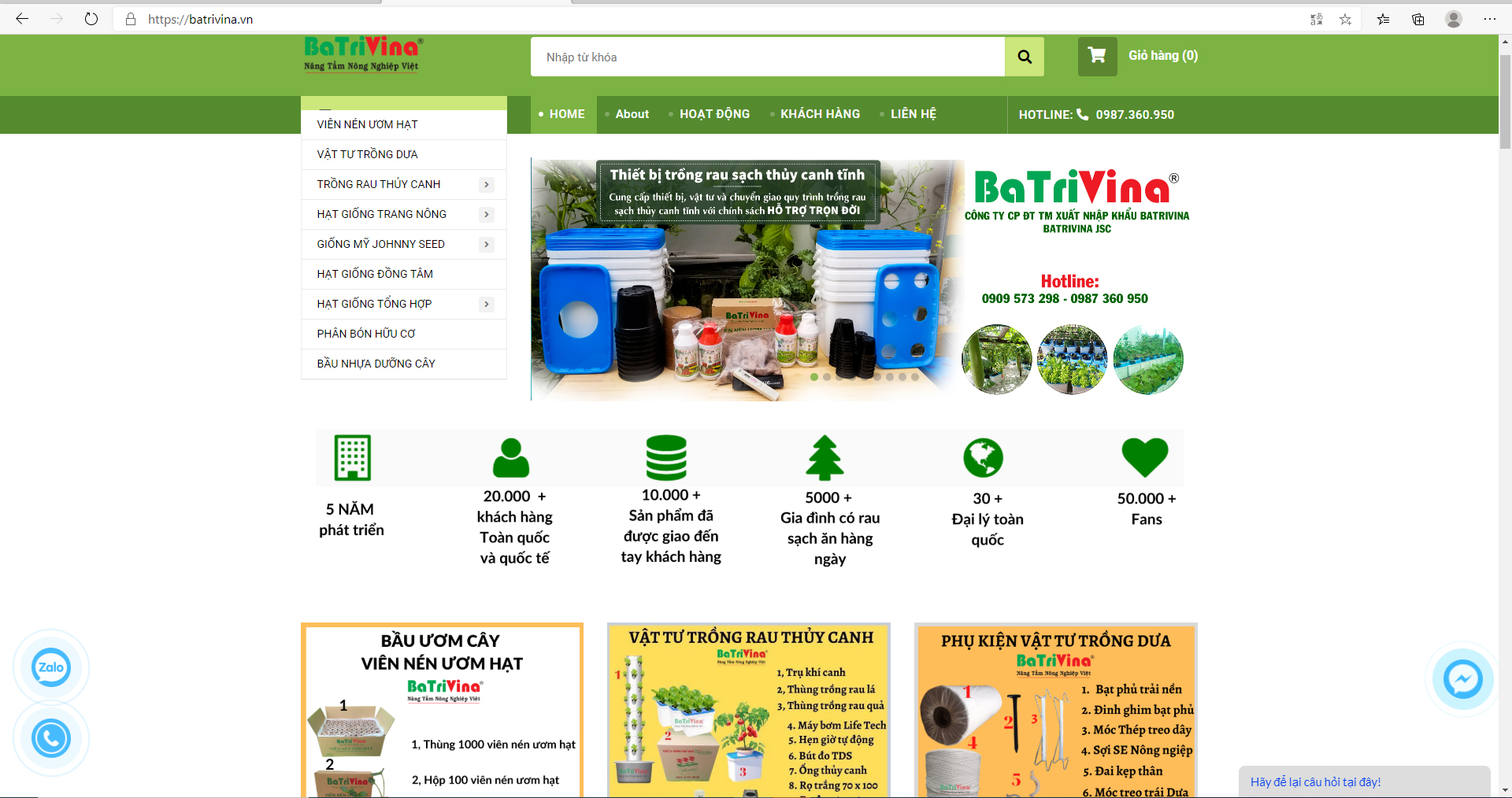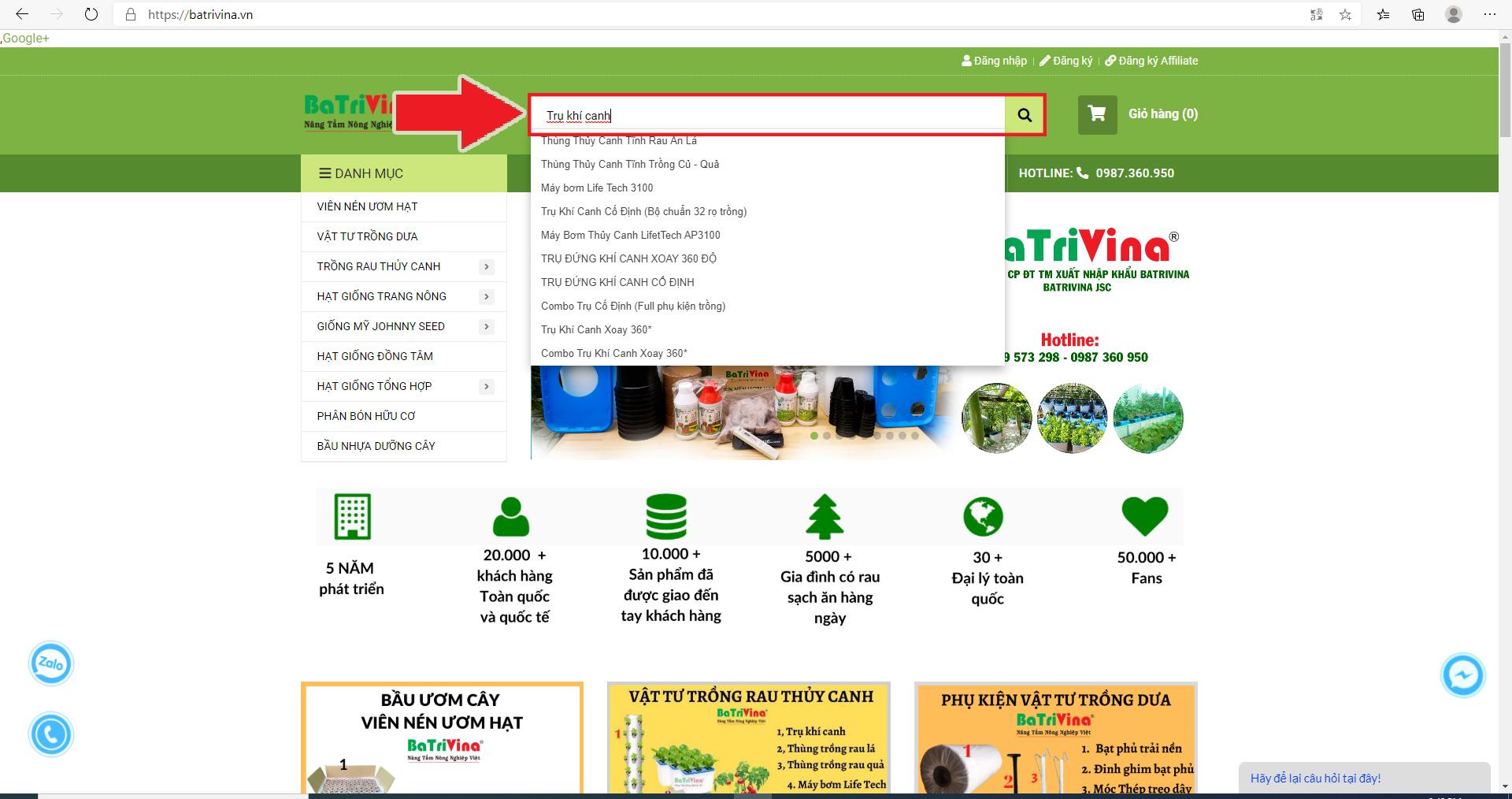 Cách 1: Gọi điện thoại trực tiếp đến hotline của công ty: 0909 573 298 - 0987 360 950 để được mua hàng và hướng dẫn trực tiếp từ 7h30 - 18h00 hằng ngày (cả CN và ngày lễ), hoặc gửi tin nhắn đến các trang FANPAGE của BaTriVina,nhân viên BaTriVina luôn sẵn sàng phục vụ.