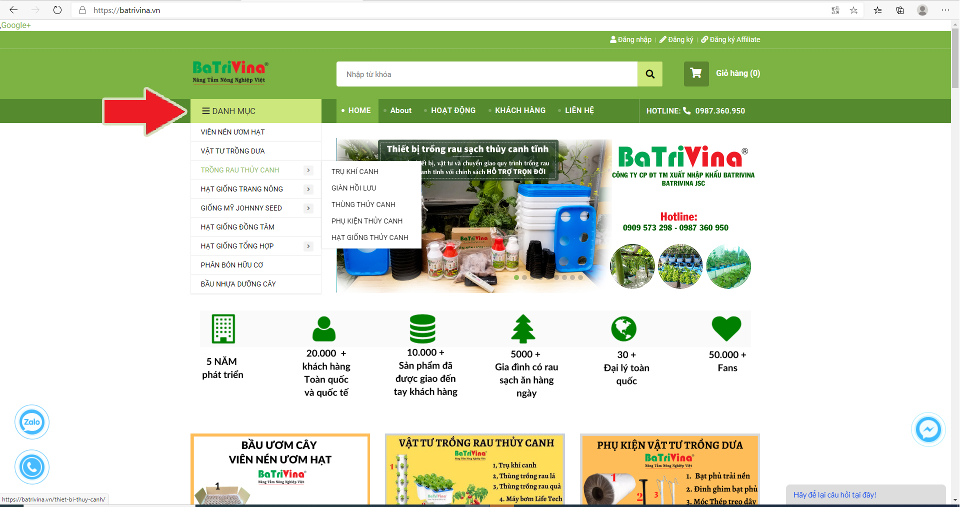 + Click vào danh mục sản phẩm có sẵn trên trang chủ của website.